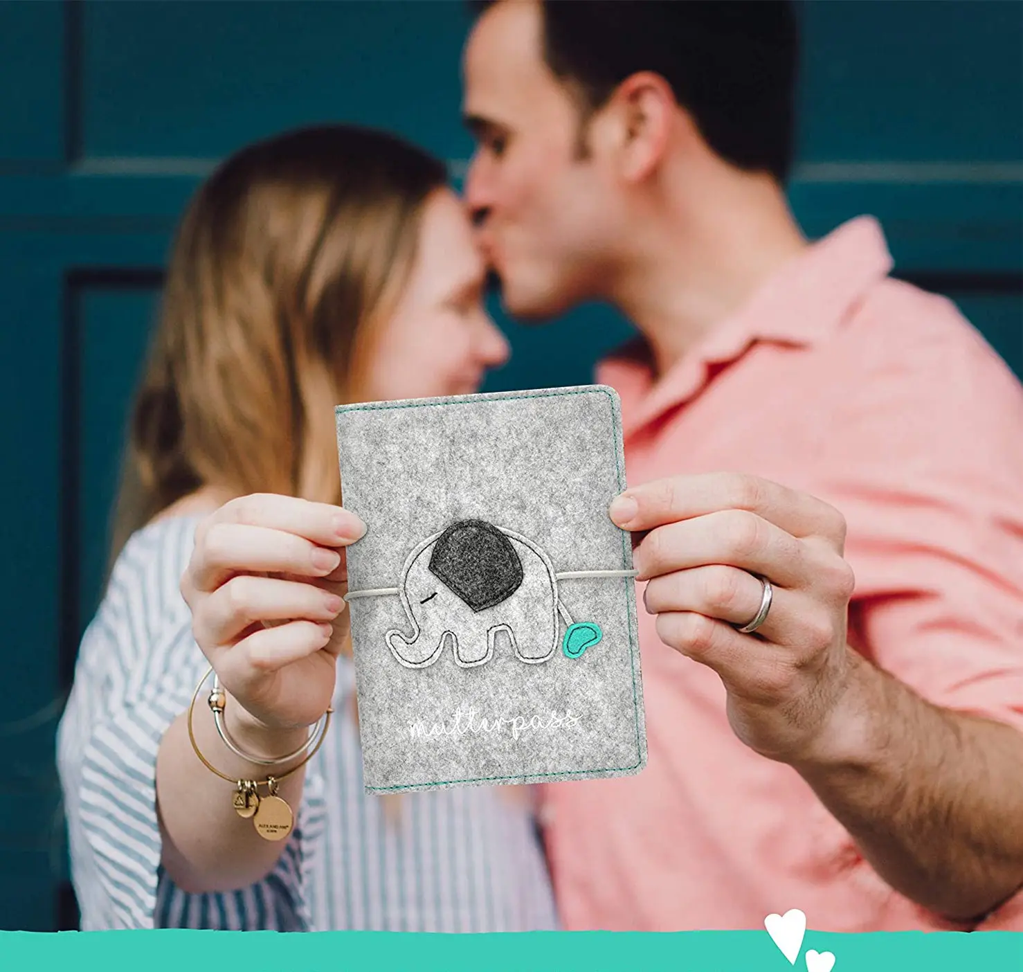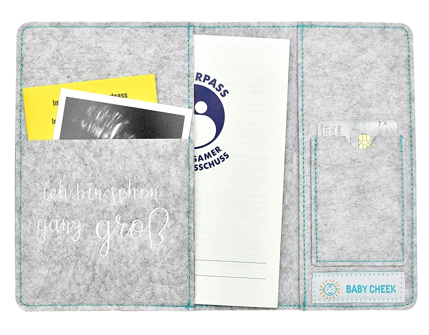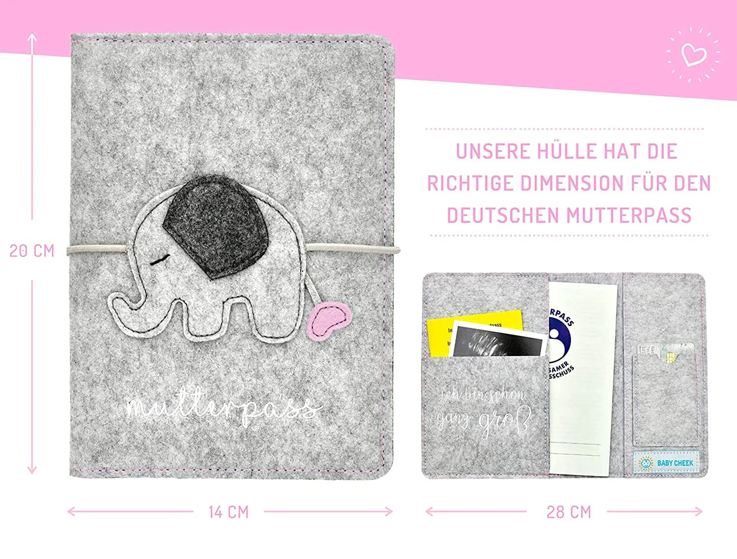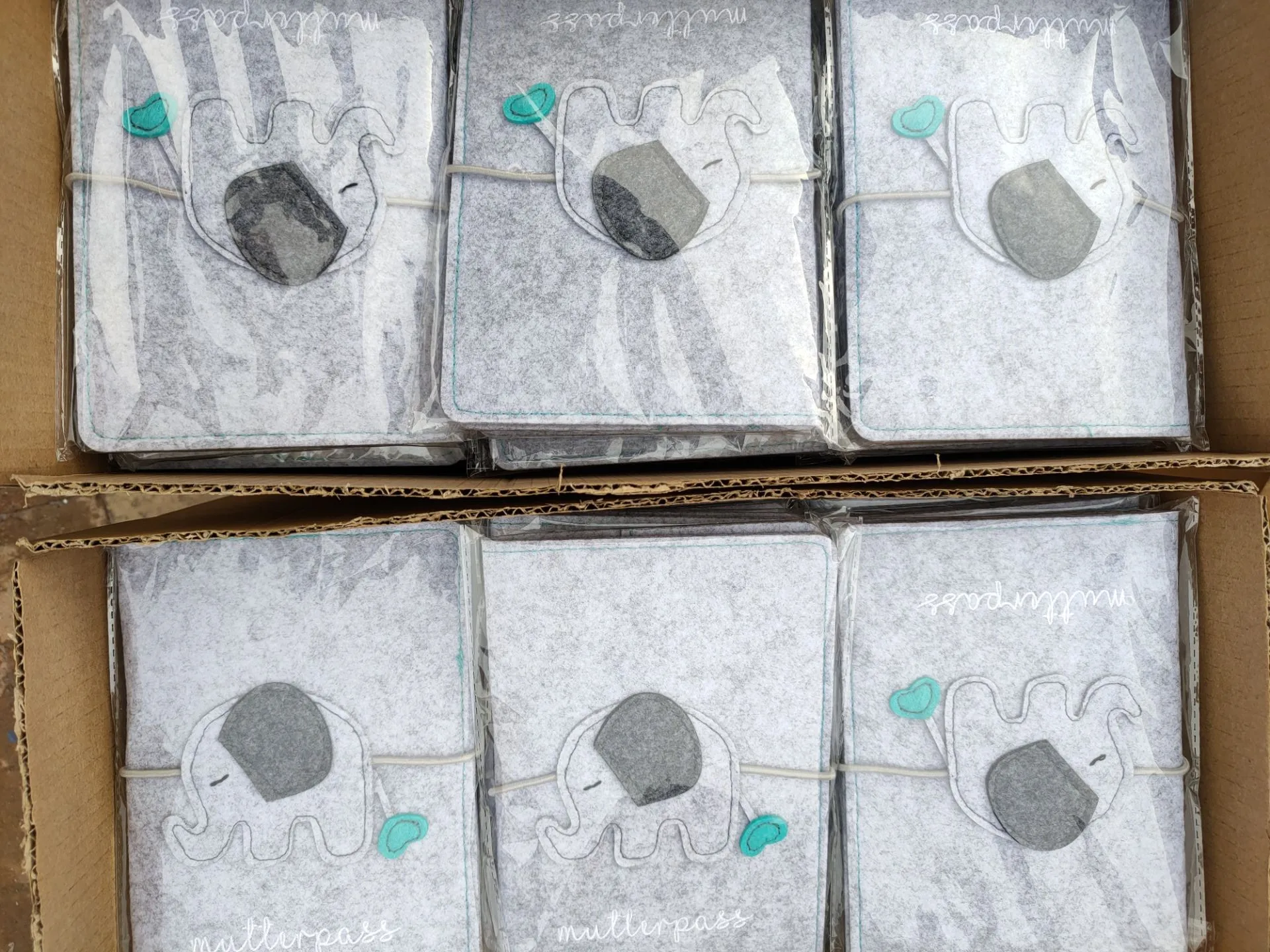 Custom Elephant Grey Felt Maternity Log Mutterpass Cover Bag with String
