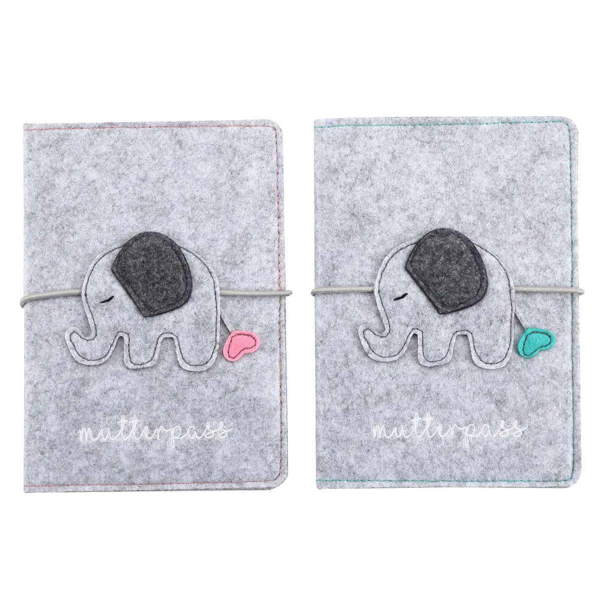 Progift Cheap Promotion Custom Logo Embroider Grey Elephant Premium Felt Maternity Log Pass Cover Bag Case Sleeve with Elastic String Snap Button Zipper Closure for New Mother Gift